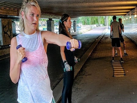 De groepstrainingen van Boksen In het Park vinden plaats op twee vaste trainingsdagen met vaste tijdstippen. Woensdagavond en zondagochtend. Op zondagochtend is er een aparte groep voor enkel vrouwen.